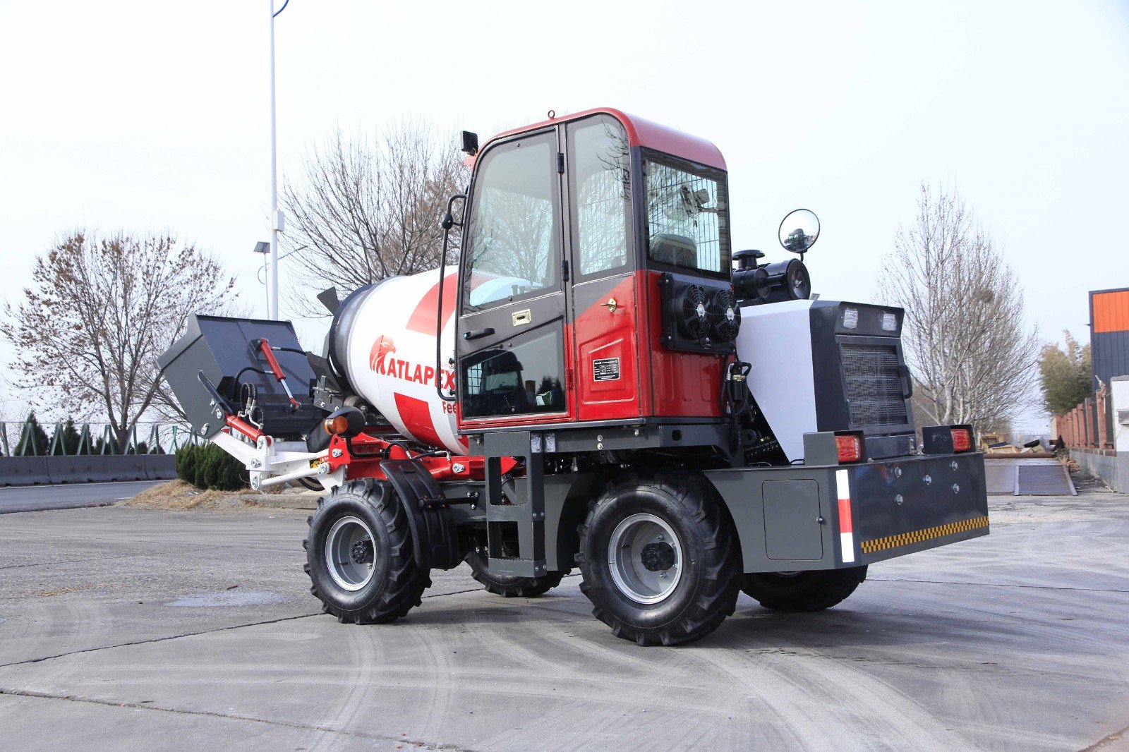 Equipped with an ISUZU drive axle and 20.5-16 tires, the machine travels up to 25 km/h, allowing users to move quickly between locations. The 4×2 traction axle and 1:10 reduction ratio ensure stable performance, while the mixing drum rotates at over 15 laps per minute.