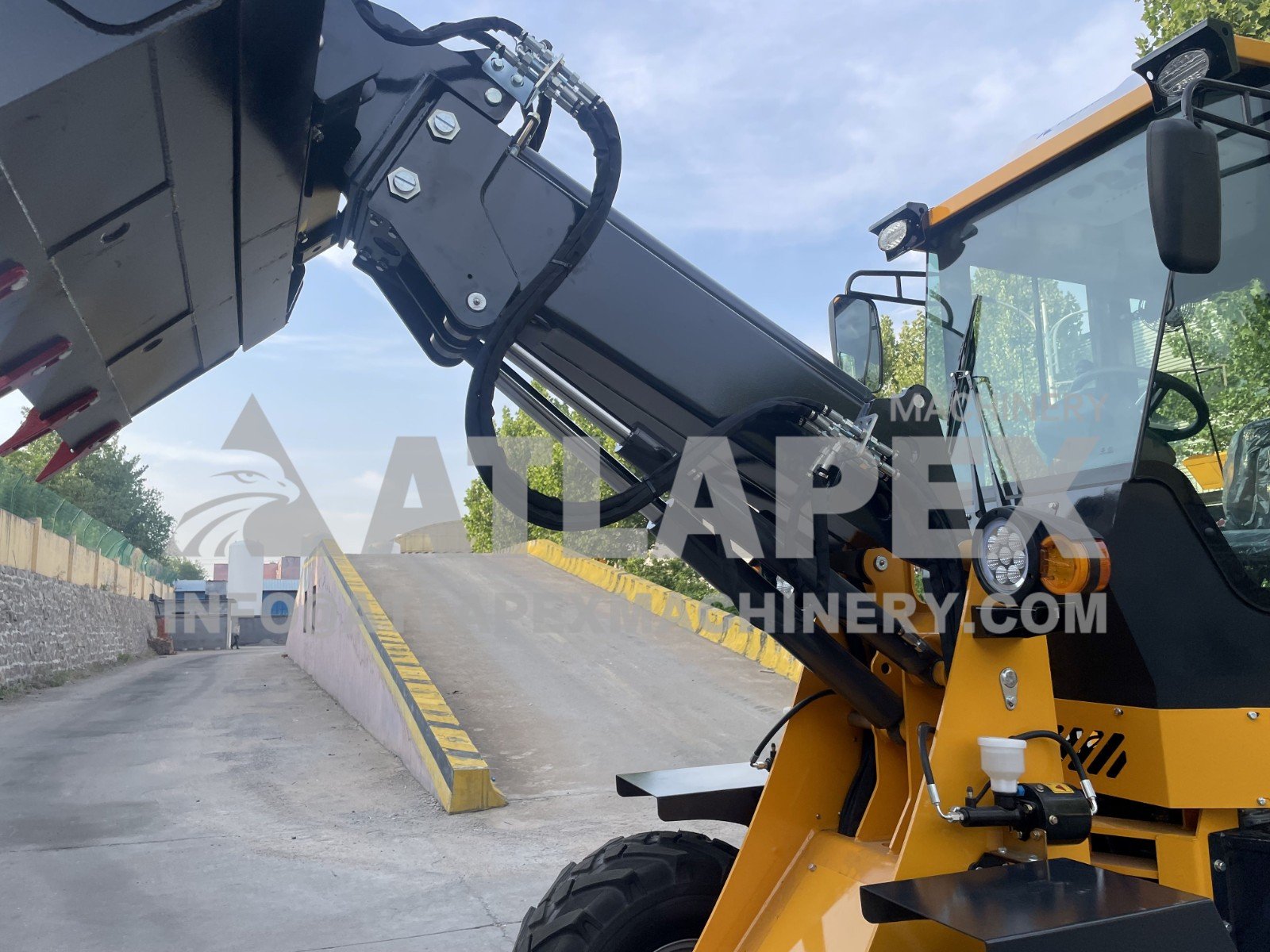 With the development of construction installation projects and industries such as national defense, the telescopic arm structure has been widely used in engineering practice. ATLAPEX's backhoe loader can also be equipped with this attachment, with the advantages of having a large carrying capacity in a small range, a long operating distance, and a high operating height under allowable load conditions. The working principle of the telescopic arm of ATLAPEX backhoe loader is to adjust the length of the boom through the hydraulic system to achieve different working distances of the machine.