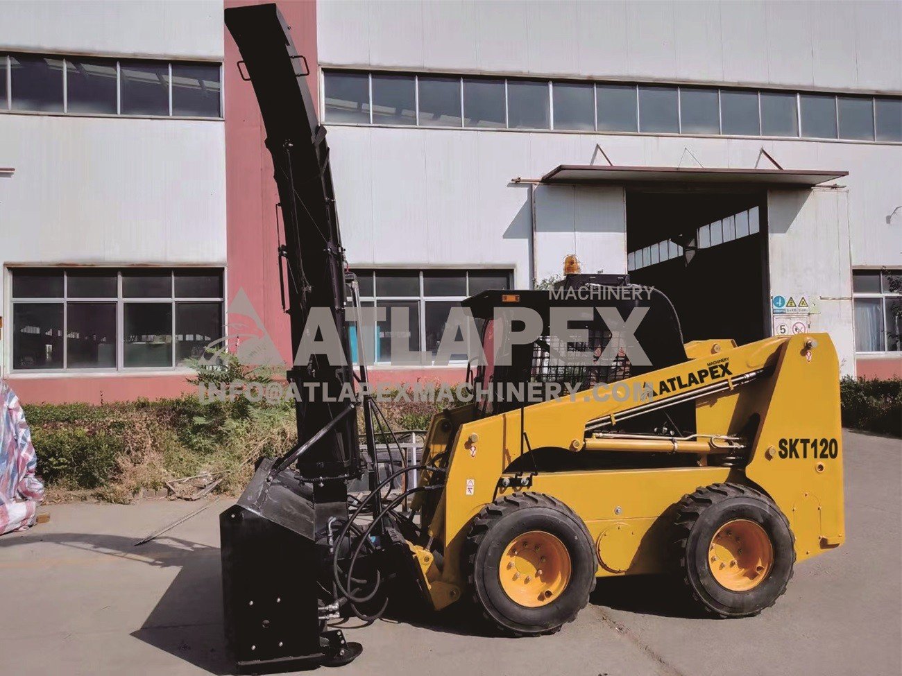 The wheel skid steer loader SKT120 is a heavy-duty piece of equipment commonly used in the construction and agricultural industries. When used with a snowblower attachment, these machines become even more effective at clearing snow from roads, parking lots, and sidewalks.