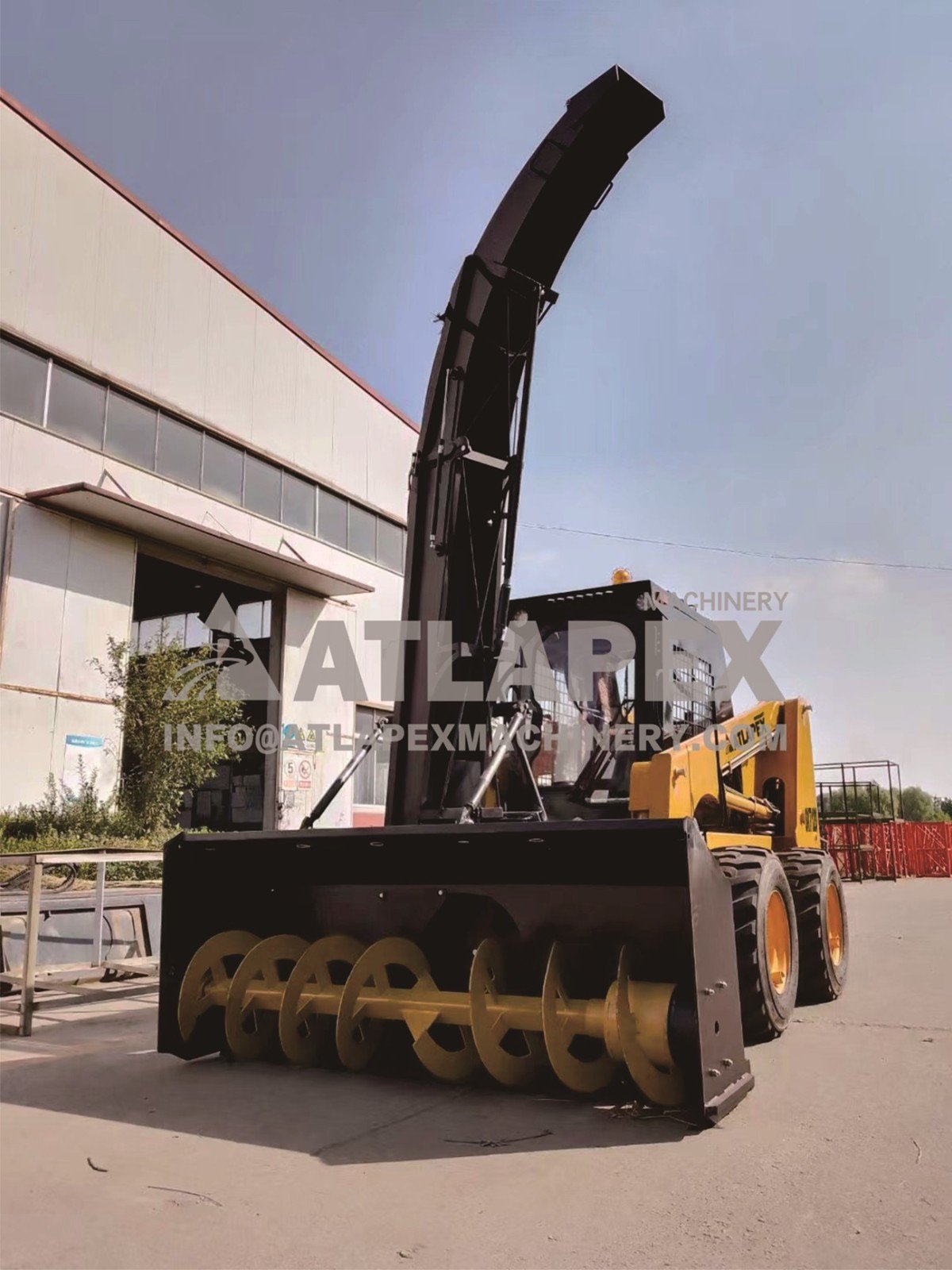 When a wheel skid steer loader uses a snowblower attachment, operators can easily maneuver the machine in tight spaces and around obstacles. Skid steer loaders' compact size allows them to access areas that larger snow removal equipment may not be able to reach, making them a valuable tool for snow removal in confined spaces.
