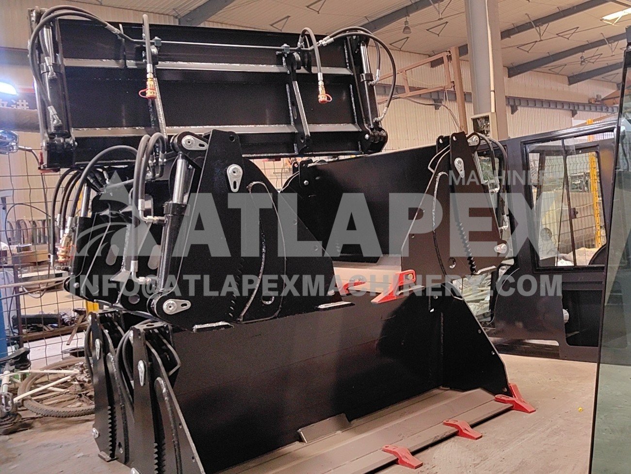 4. Clamping and Compacting Materials: The tough plates on the front and rear enhance the bucket's functionality, allowing it to be used as a grapple to clamp and compact materials.