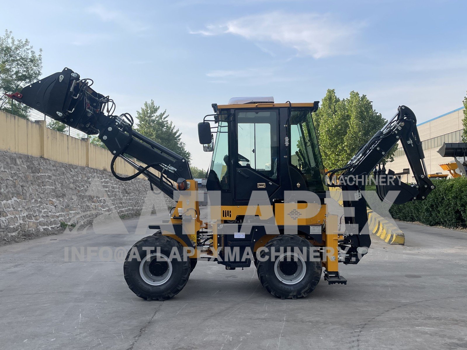 The ATLAPEX Backhoe loader BKA80 adopts central handover, small turning radius and flexible operation; adopts hydraulic transmission, four-wheel drive, stable performance and high reliability; the frame is all made of manganese steel plate, with high strength and long service life. The 4 in 1 bucket attachment is a multi-functional engineering tool that combines four different functions in one bucket. Its specific functions include: