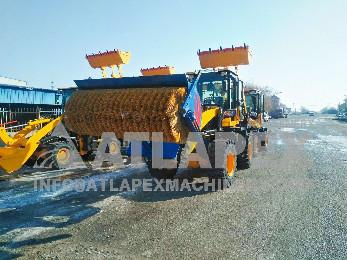 The ATLAPEX wheel loader with snow blower adopts advanced sweeping technology and has powerful sweeping ability. It can quickly clear ice and snow from roads, squares and other places, and can easily handle ice and snow of various thicknesses. Using a wheel loader with a snowplow attachment can greatly shorten cleaning time, improve cleaning efficiency, and ensure smooth traffic and personnel safety.