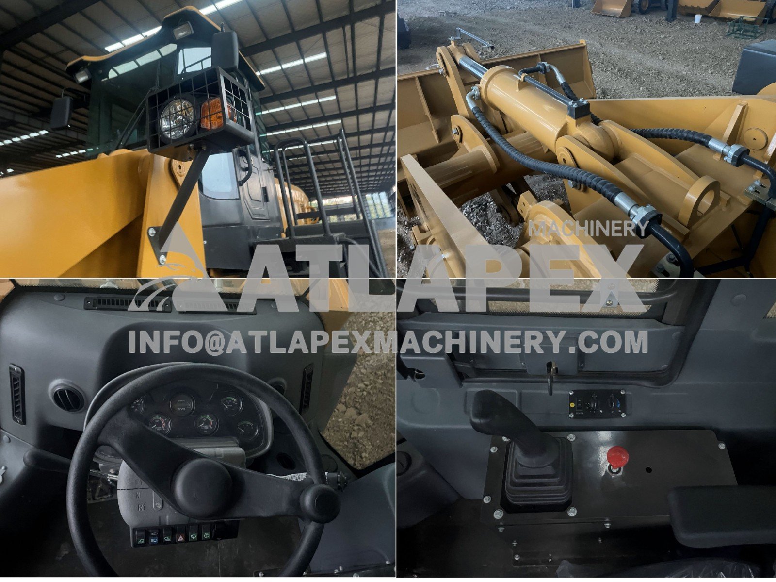 Ferthermore, the ATLAPEX ZL955 wheel loaders also has a European-style appearance and luxurious interior cab. The stylish design not only adds a touch of elegance but also provides a comfortable and ergonomic working environment for the operators.The all-glass cockpit door of the ATLAPEX ZL955 wheel loaders offers a wide visual field, allowing operators to have a clear view of their surroundings. This enhances safety and helps improve efficiency during operation.