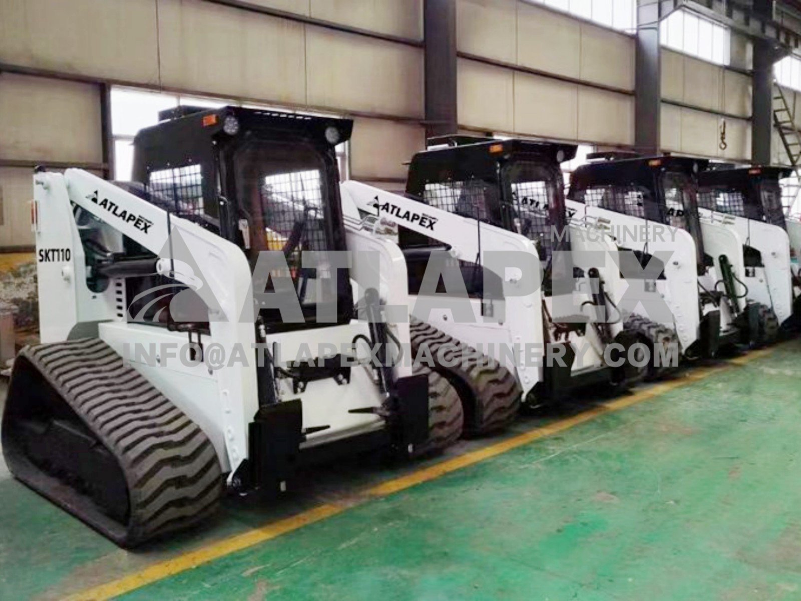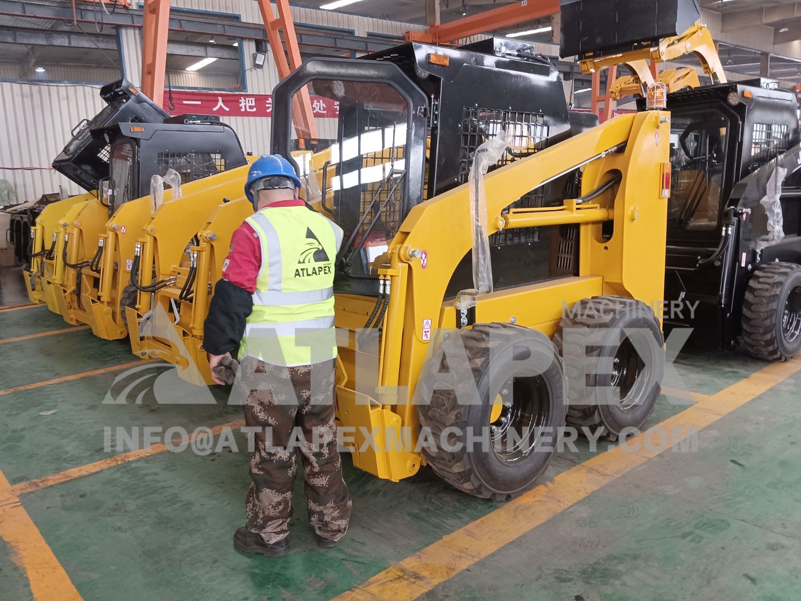 When working on soft ground such as mud, crawler loaders can evenly disperse the pressure of the body, bring less pressure to the surface, have a lower ground contact ratio, and have more outstanding mud operation performance. The ATLAPEX skid steer loader adopts a sturdy chassis design, good off-road performance, low ground contact pressure, better stability, traction and driving force, and is ideal for residential construction and gardening applications.