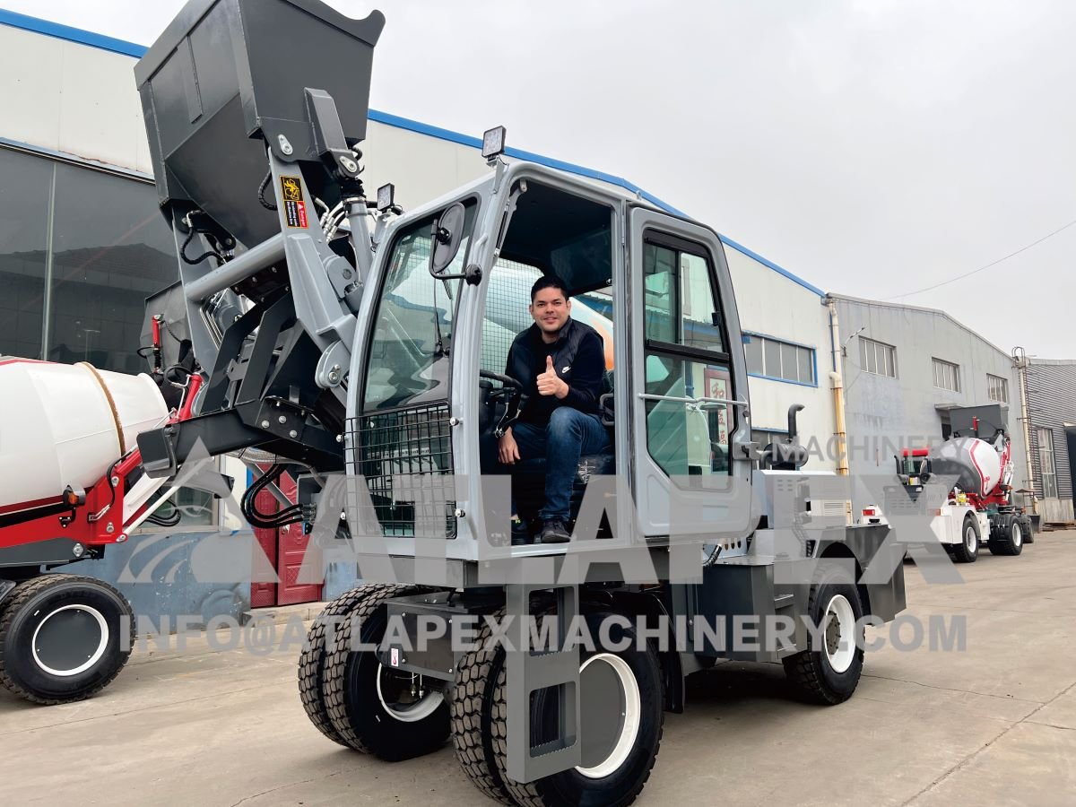 After the demonstration, the client had the opportunity to operate the mixer himself. With a few simple instructions, he quickly grasped how to load, mix, and discharge the concrete. His enthusiasm was evident as he navigated the machine around our testing area, showcasing its capabilities. The client’s positive feedback reinforced our belief in the value and efficiency that our self-loading concrete mixer brings to the construction industry.