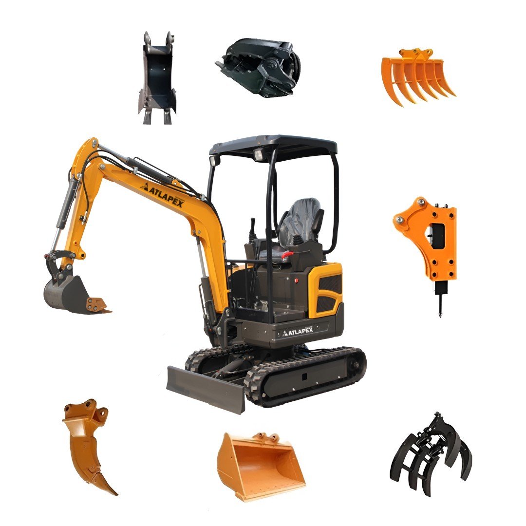 The ATLAPEX 1.5-ton hydraulic excavator is engineered to seamlessly integrate with a variety of multifunctional attachments. Whether you need to dig, load, grade, trench, break, drill, press, or lift, this machine can handle it all with ease. Its adaptability makes it suitable for various sectors, including hydropower, transportation, municipal projects, landscaping, agricultural land transformation, and oil pipeline construction.