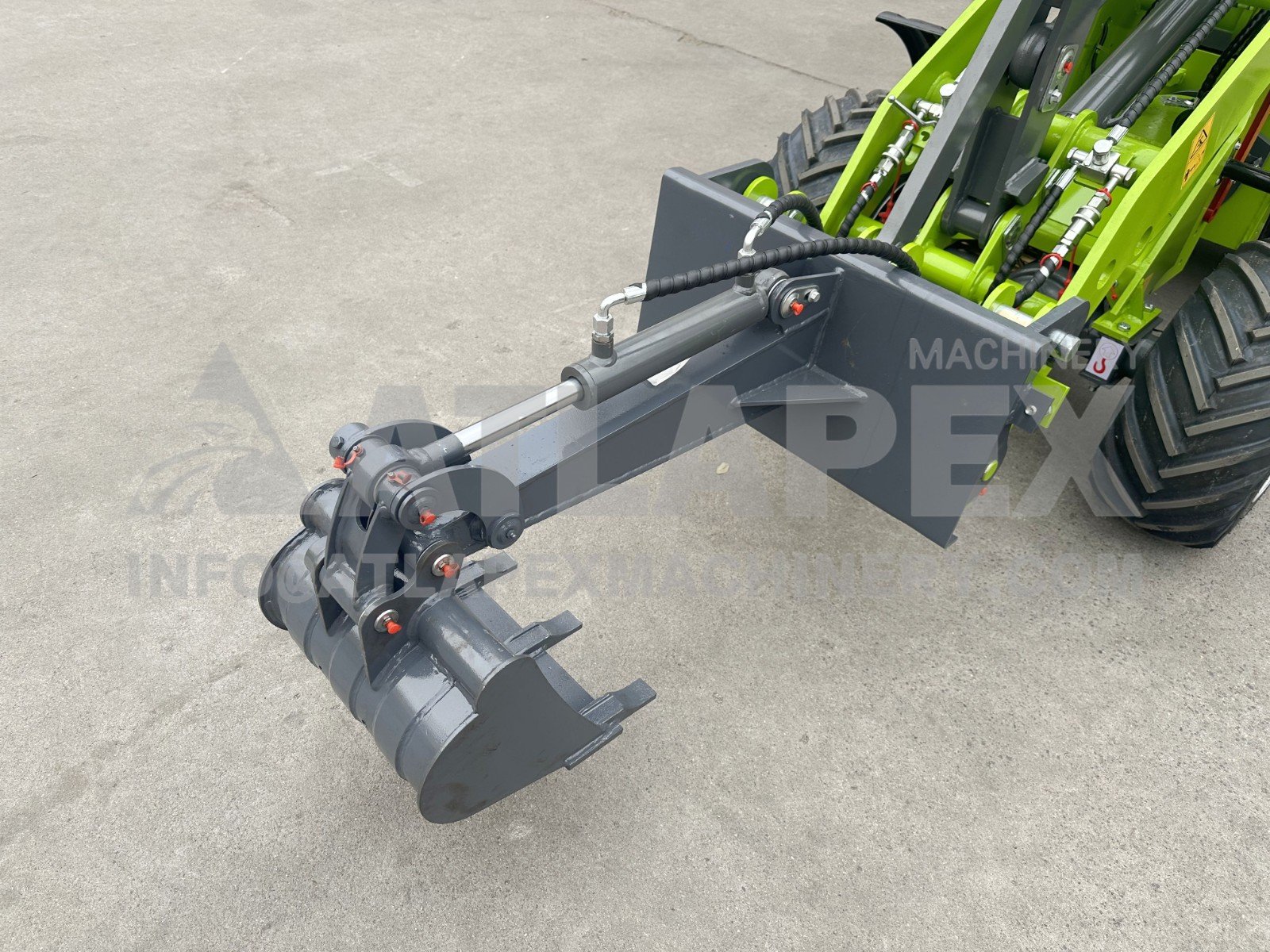 ATLAPEX electric loader can be equipped with a digging bucket, significantly enhancing its functionality and operational efficiency. The primary purpose of the digging bucket attachment is to extend the loader's capabilities, making it more flexible for various tasks. As one of the most fundamental attachments for loaders, the digging bucket can achieve to scoop, load, and unload bulk materials such as soil, gravel, and coal. Controlled by a hydraulic system, the bucket's opening, closing, and tilting functions facilitate efficient loading and unloading of materials.