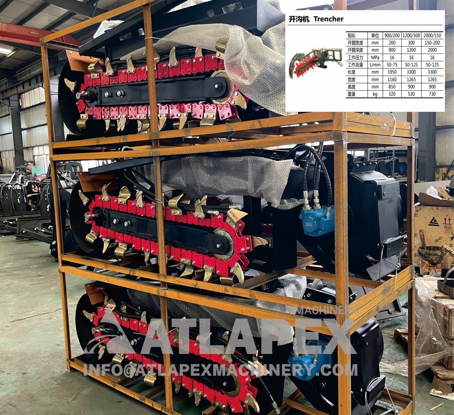 Trenchers are attachments that are used for digging trenches for utilities such as water lines, electrical cables, and drainage systems. By attaching a trencher to a skid-steer loader, operators can easily dig trenches in a variety of soil conditions. The trencher attachment is typically hydraulically powered and can be adjusted to dig trenches of different depths and widths.
