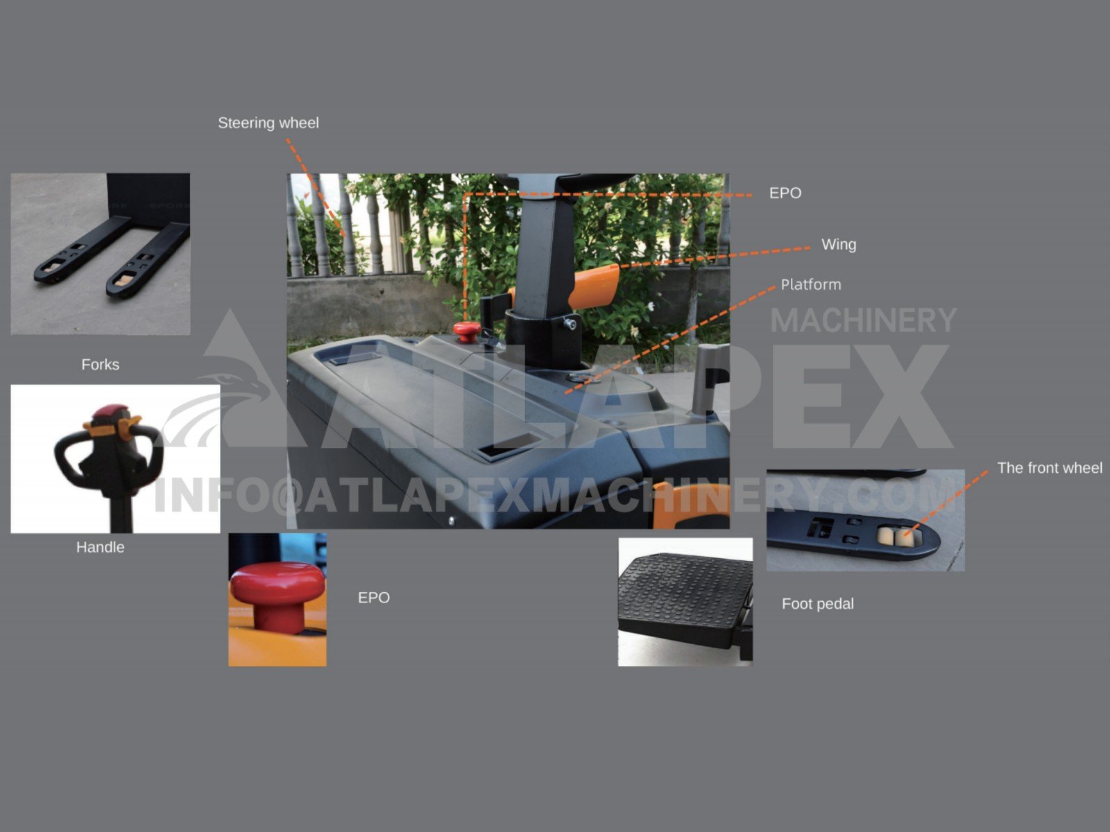 ATLAPEX electric pallet truck adopts the most scientific and advancing design ideas. lt is second to none.Hold the firm belief that the forklift can greatly improve your warehouse space and improve your efficiency.